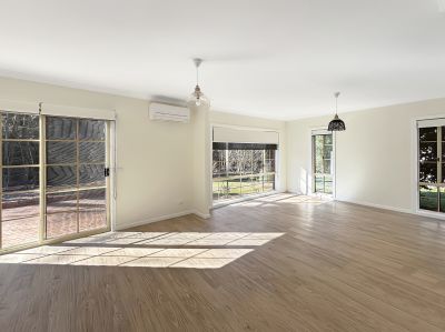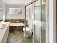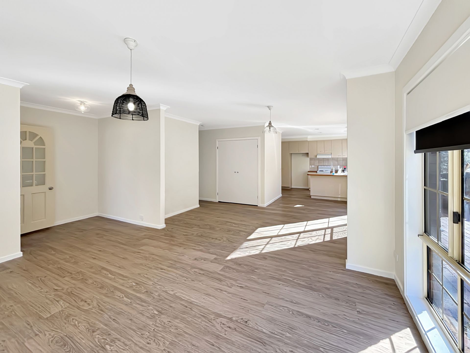 The open-plan living area includes a split system for all-round comfort, and the two bathrooms add extra convenience.