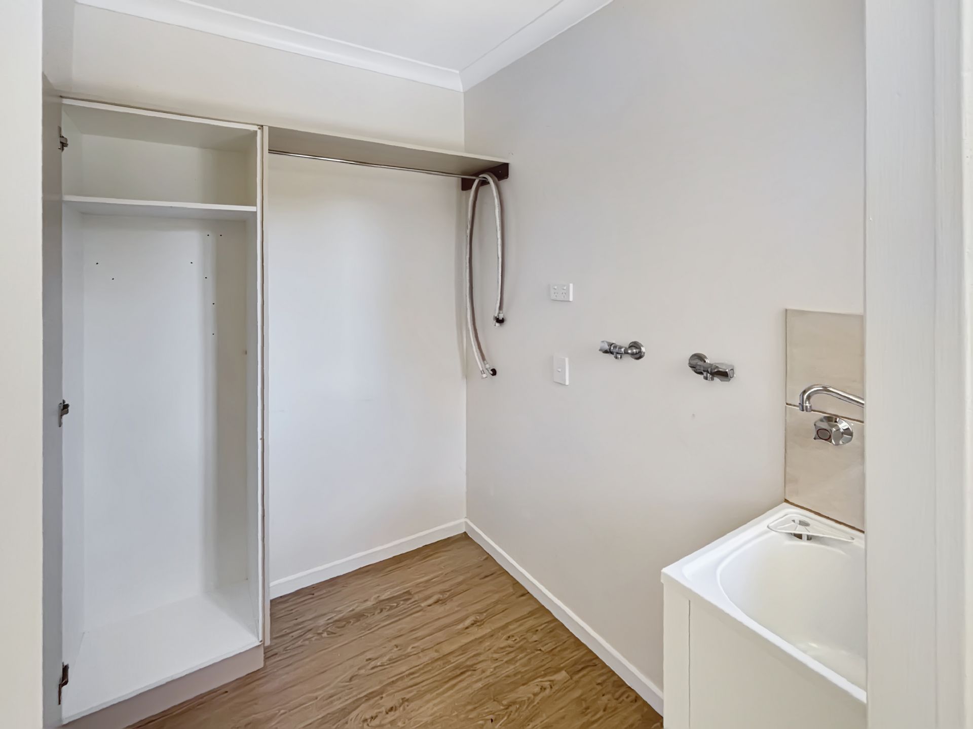 A full-size laundry provides additional storage, adding to the practicality of the home.