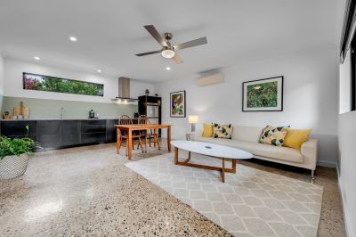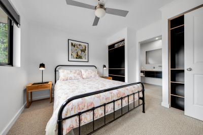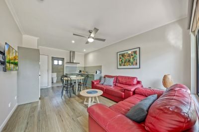 • Owners residence comprising of 3 bedrooms 2 bathrooms, open plan living, private rear yard, undercover entertaining, double garage with mezzanine.