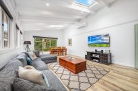 Step inside to a free flowing floor plan, where the sun drenched living area is enhanced by soaring ceilings and skylights, creating an inviting, airy ambiance. The contemporary kitchen seamlessly connects to the open plan living and dining zones and flowing out to a spacious undercover patio, ideal for year round entertaining.