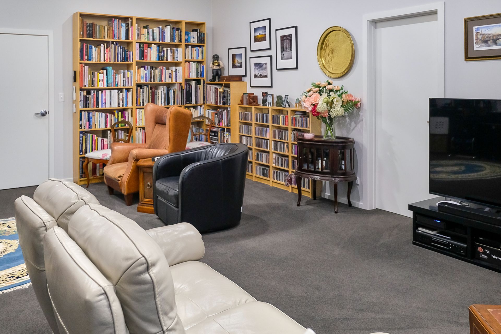 The 4 bedroom, 2.5 bathroom home is spacious, comfortable and features a home office, dedicated cinema room, two living rooms with one that doubles as a shared guest space. The chef's kitchen is a standout, featuring solid timber cabinetry, stainless steel benchtops, a commercial oven, two dishwashers, and a pantry with a pull-down ladder for convenient roof storage. There is a powder room and two laundries. The main bedroom features an ensuite and a generous walk-in wardrobe, while the second bedroom also offers an ensuite and built-in robe. Two additional bedrooms provide versatile options, with one currently used for storage and the other as a sewing room with external access.