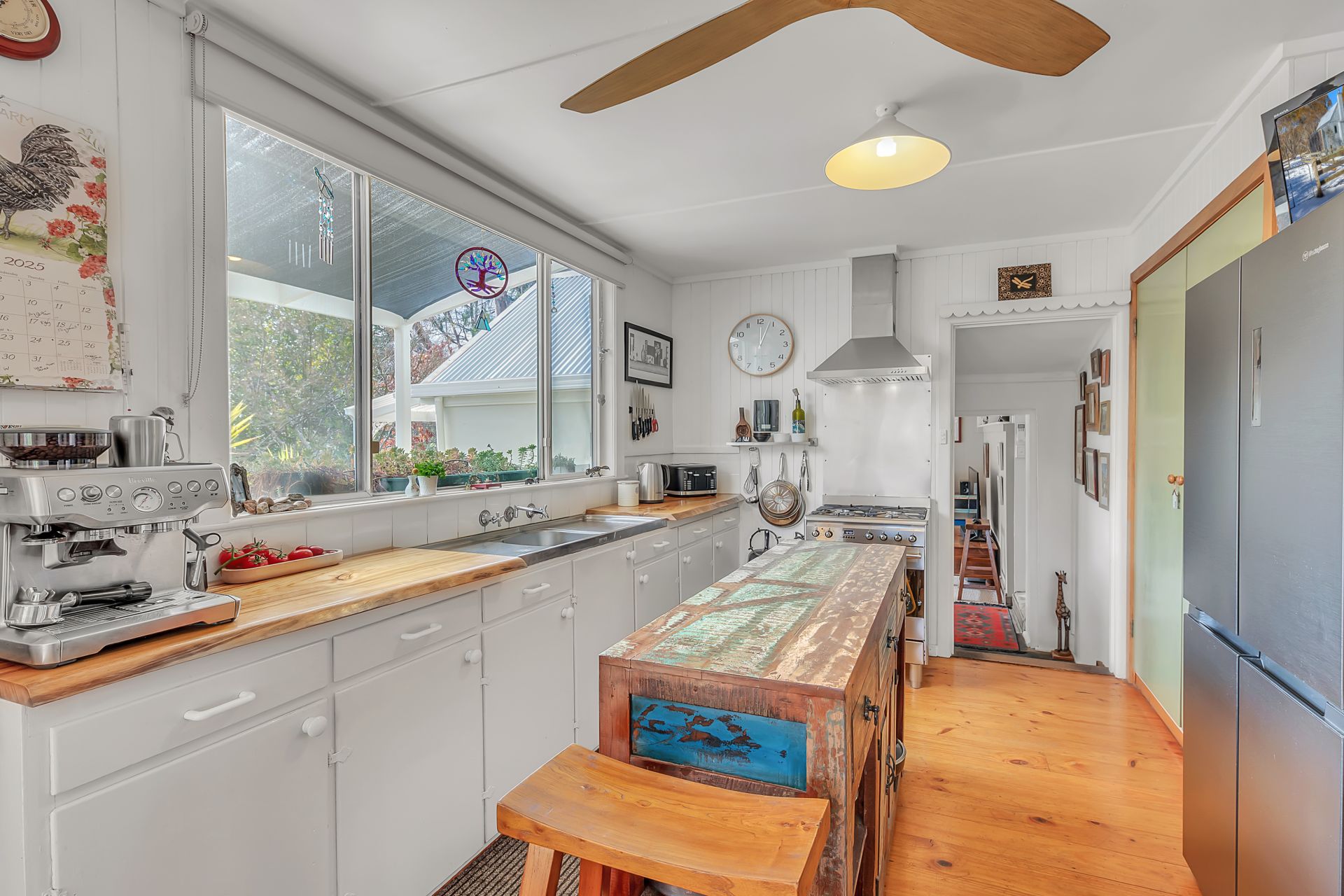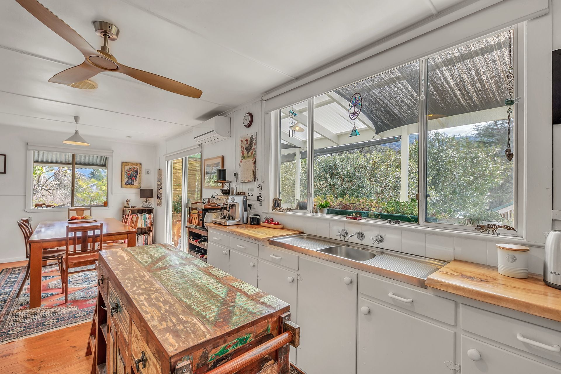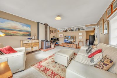 Start your mornings with coffee on the sunny front verandah, listening to the birds in the background while looking out over the landscaped native garden. Inside, the lounge with woodfire sets the tone for cosy winter evenings. The galley kitchen catches the morning light with the home's fantastic Northerly aspect, flowing into a dining space perfect for slow weekend breakfasts or quiet dinners at home.