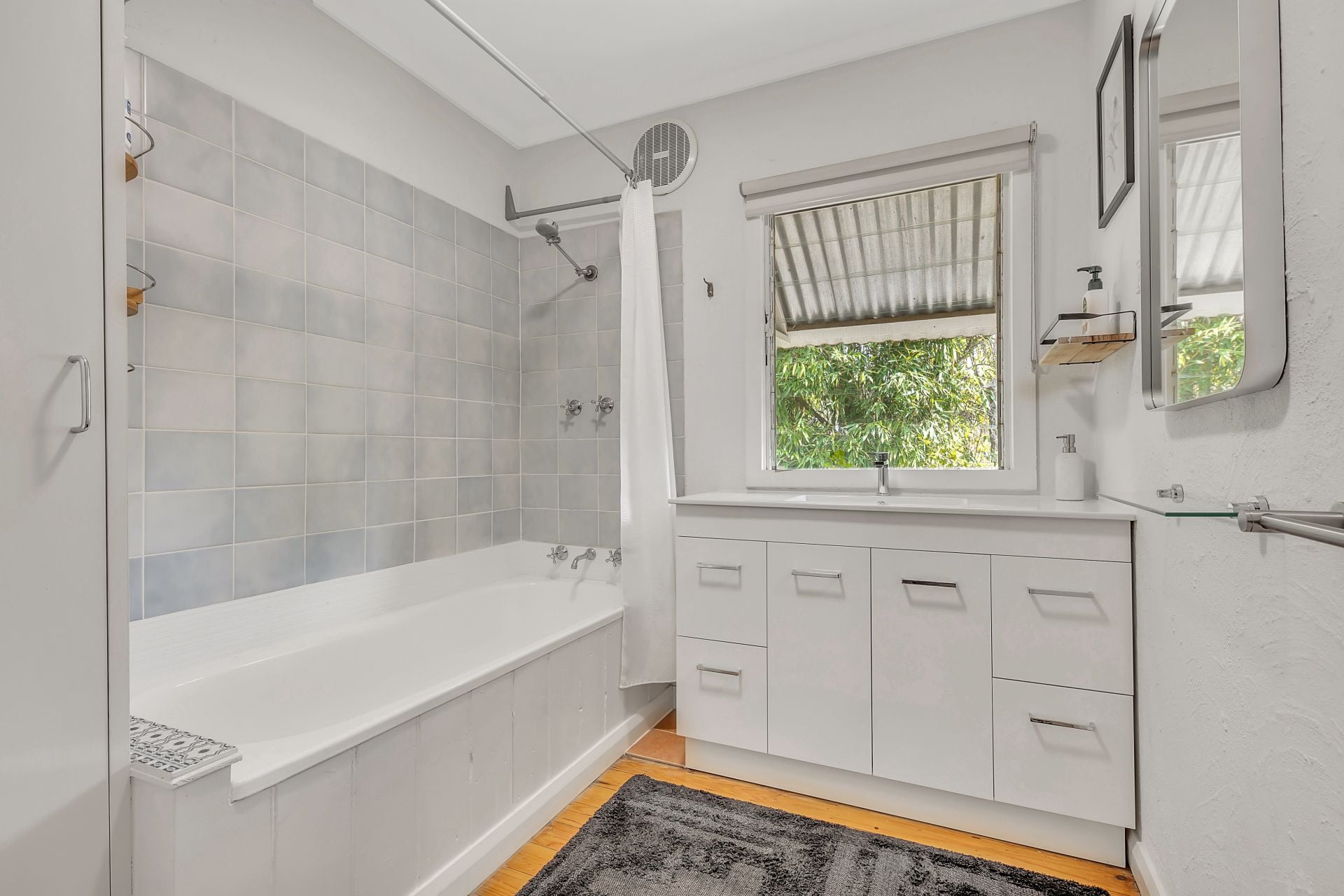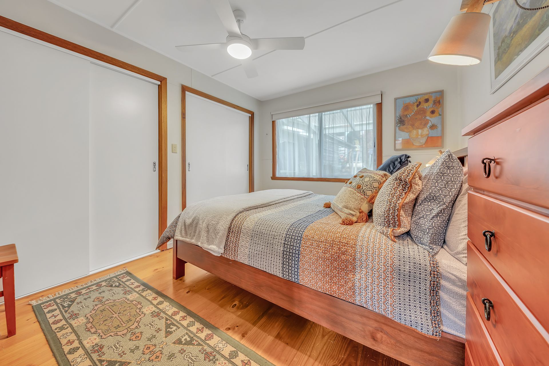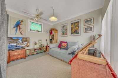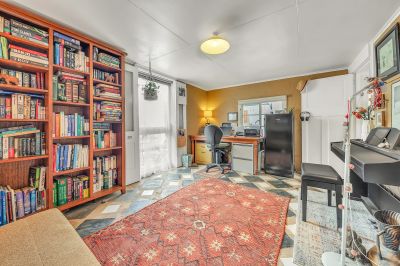 The main bedroom features generous built-in storage, while the second bedroom is great for guests. A bonus room at the rear makes a flexible third bedroom, home office space, even a kids or yoga retreat. There's also a modern bathroom, separate laundry, and timber floors that bring warmth and continuity throughout the living space.