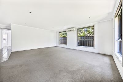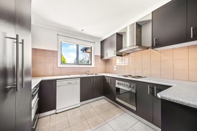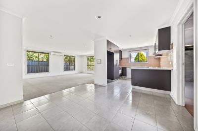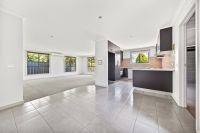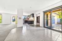 The spacious, light-filled living area flows seamlessly into the dining space, creating an inviting setting for everyday living and relaxed evening meals. The contemporary kitchen is thoughtfully designed, offering quality appliances, ample storage and a practical layout to suit modern needs.