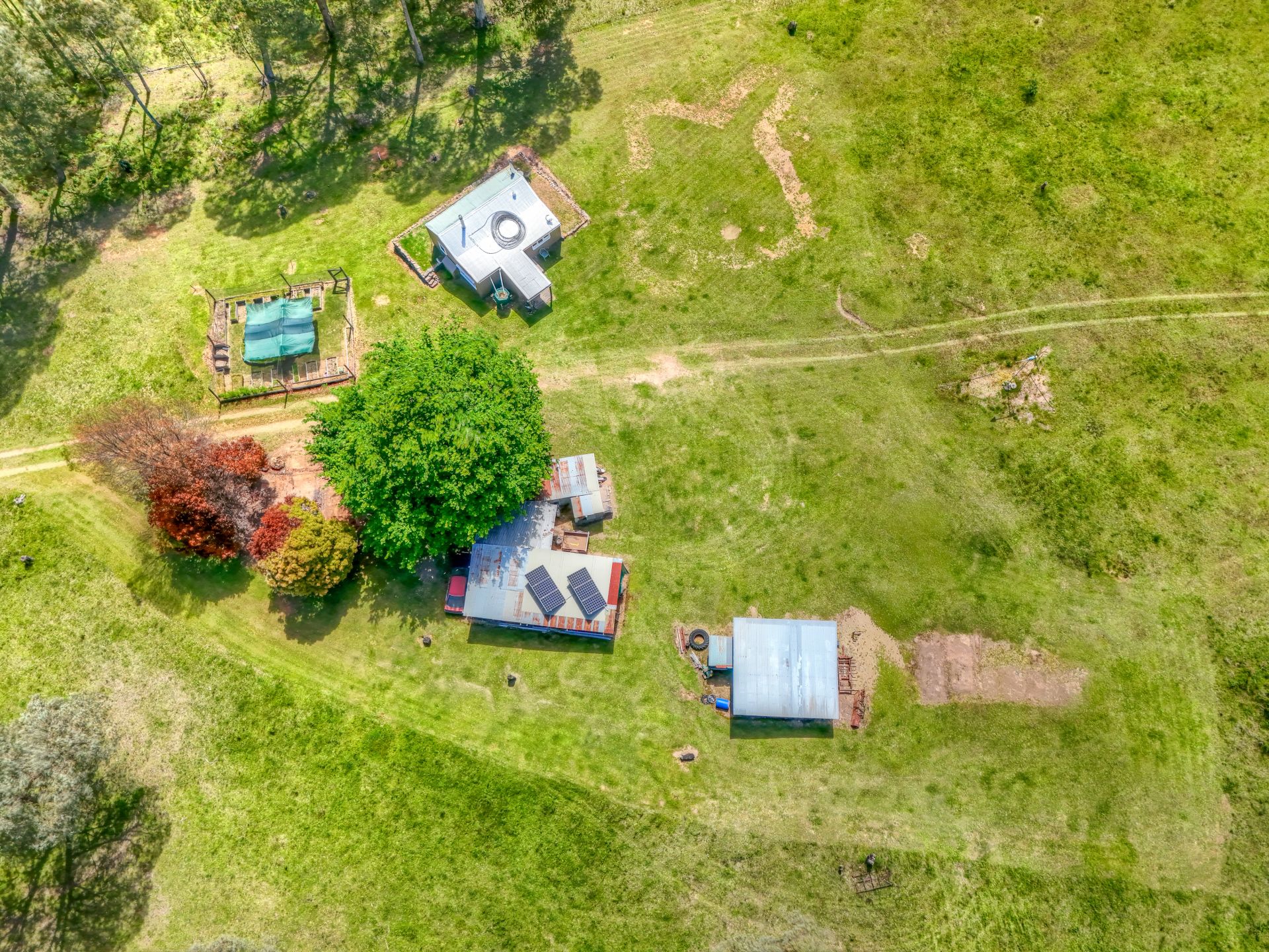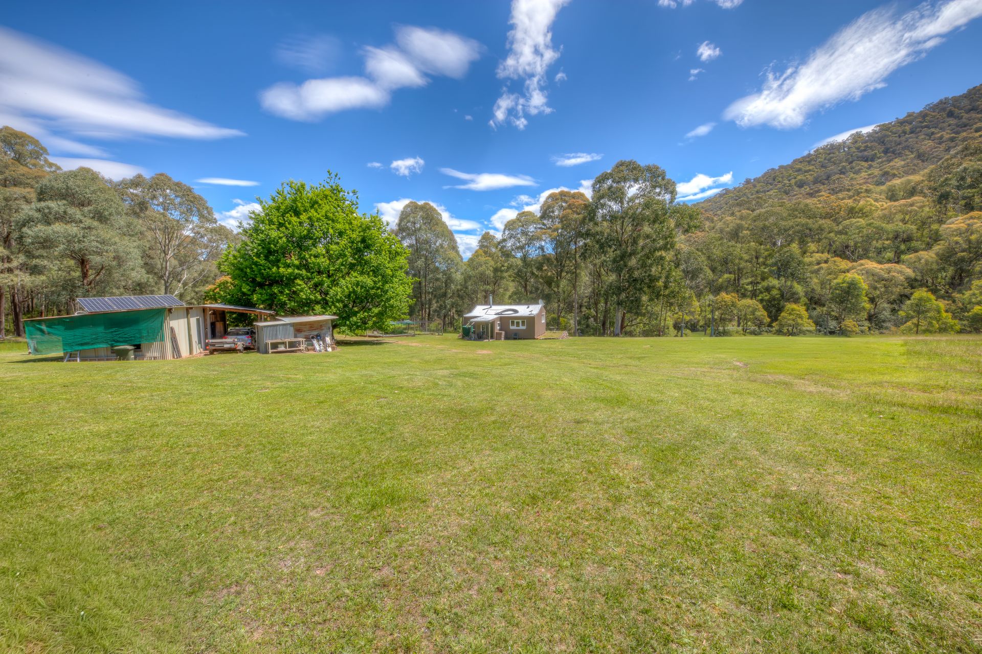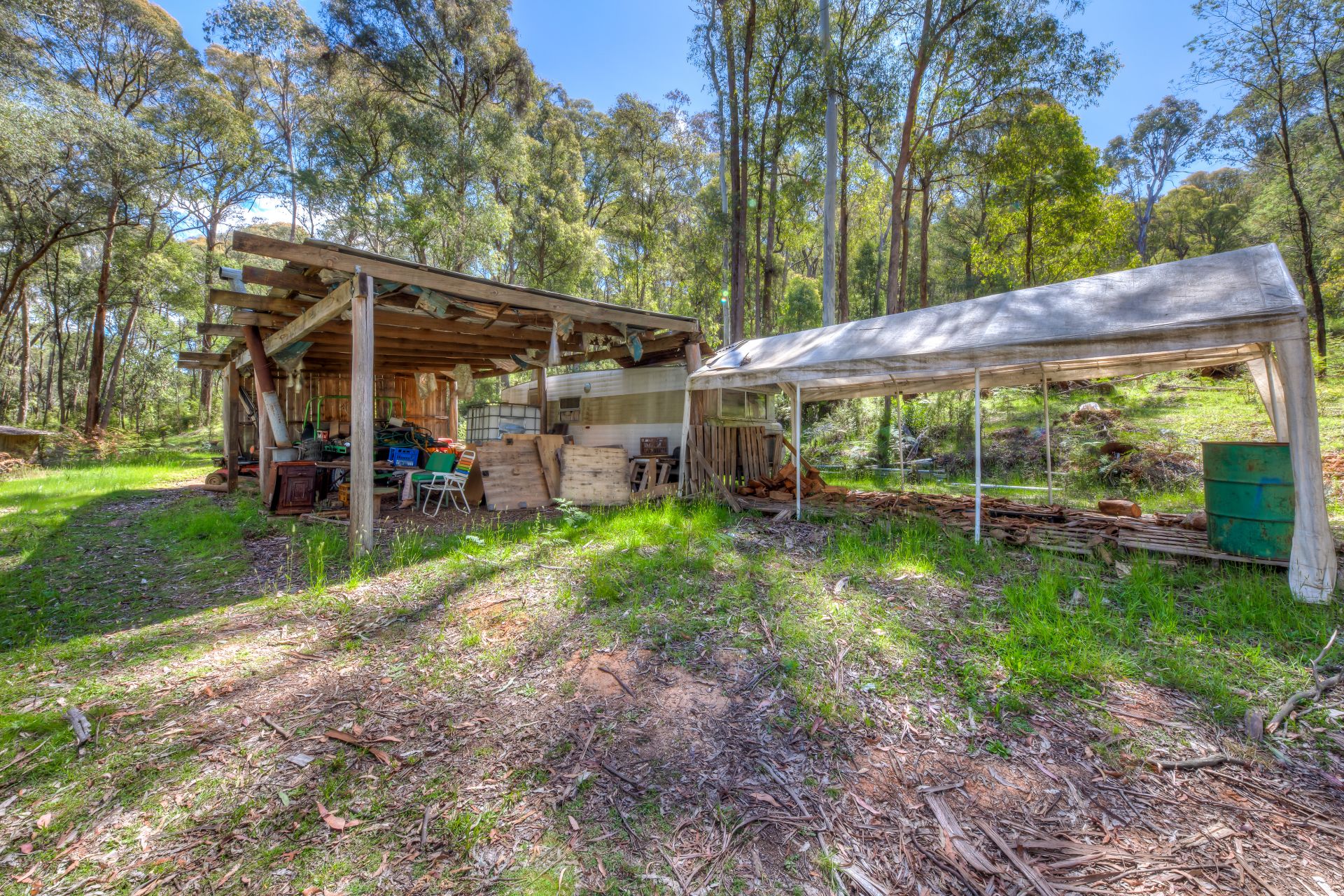 The property also includes existing shedding, a basic dwelling and essential off-grid infrastructure. A new solar and battery bank system is already in place, along with a well water supply and additional tank storage. This provides a functional starting point for those wanting to live simply or gradually improve the site over time.