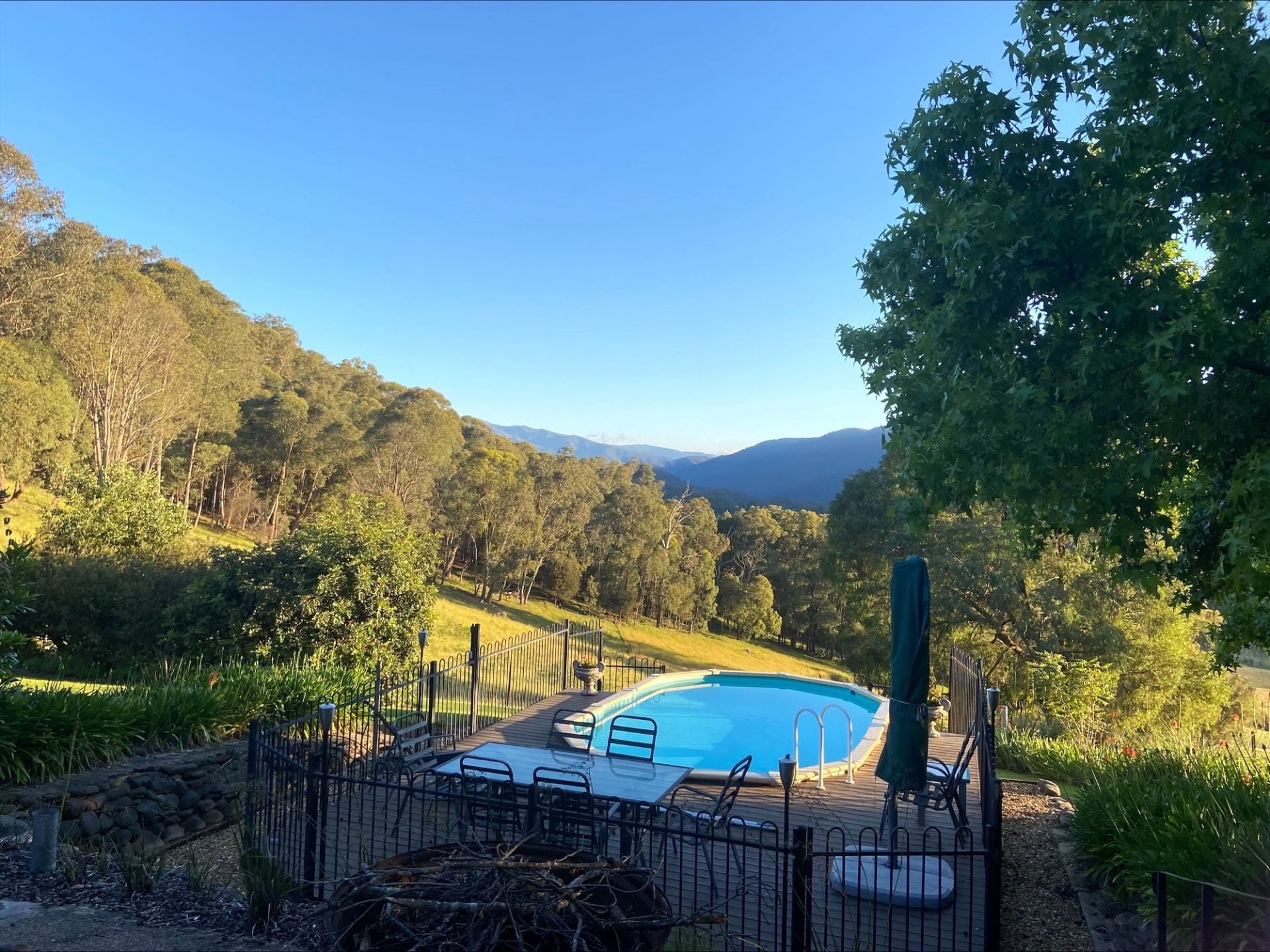 Only 6 kms out of Bright, with sealed driveway access, there are spectacular views of the Ovens Valley up to Feathertop and Mt Hotham to the south and Mt Buffalo to the west. “Mountain View” truly is a hidden gem.