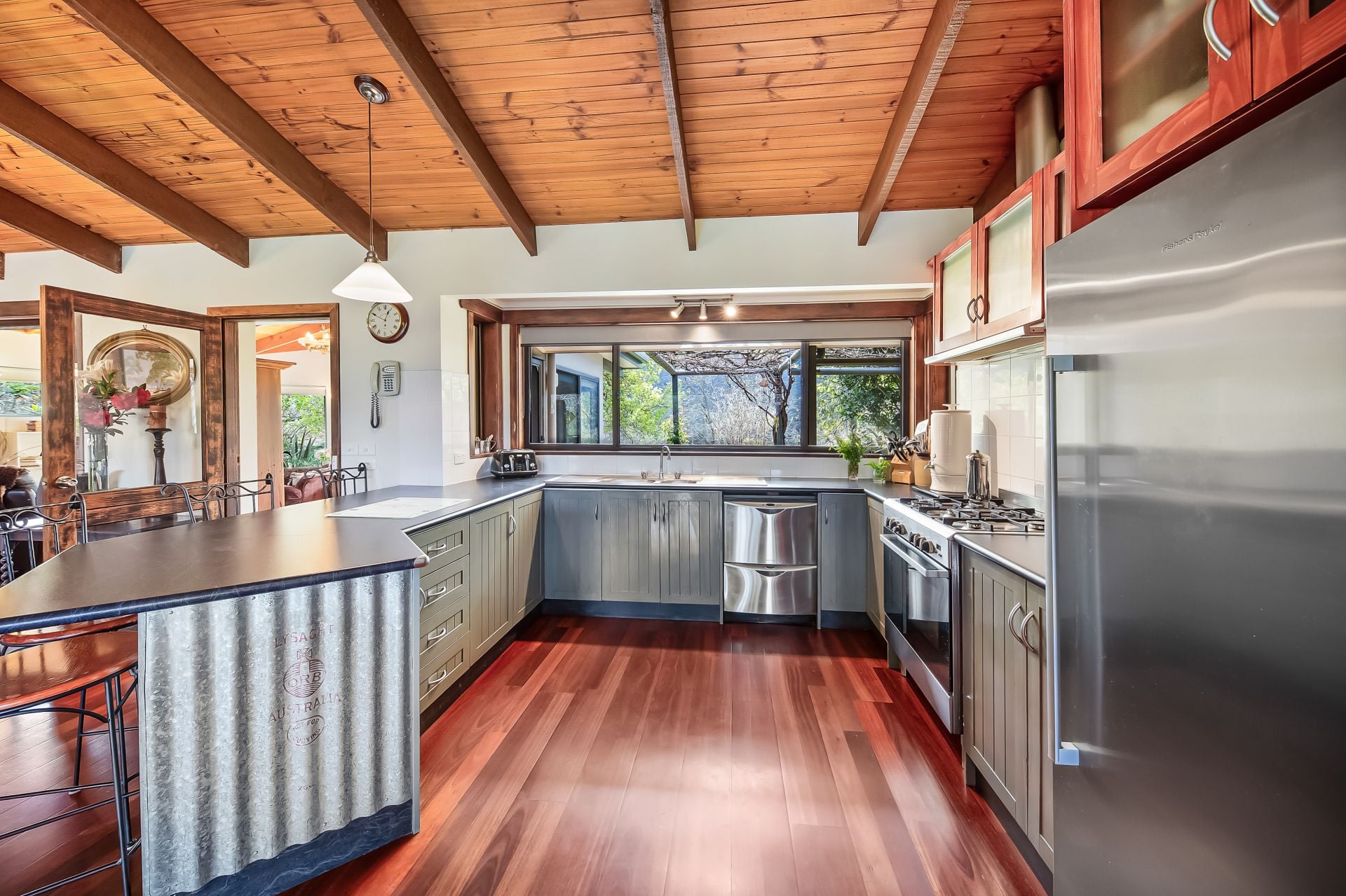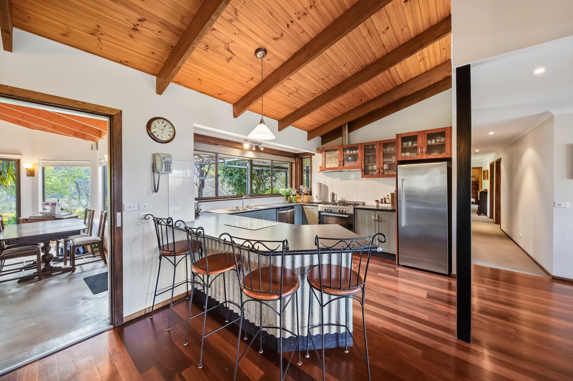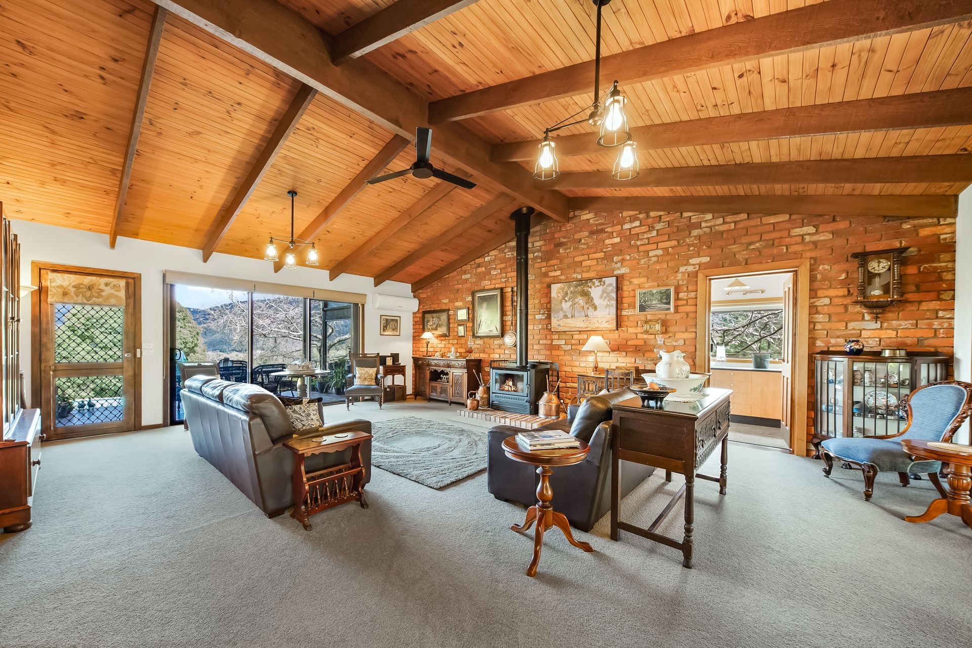 Step inside and be greeted by a large lounge room with timber lined cathedral ceilings and feature brick wall that enjoys a lovely sense of space and a Heatcharm slow combustion wood heater and backed up by a reverse cycle split system unit for year round comfort. The large double glazed sliding doors off this room lead you back outside to the undercover entertaining space where the valley views are just something else.