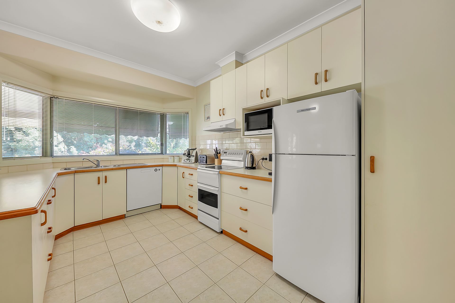 Behind its welcoming brick façade, the home unfolds into light-filled, well-proportioned spaces designed for everyday comfort. The generous lounge and dining area enjoys a lovely connection to the front verandah and leafy park outlook, creating a peaceful place to unwind year-round. A practical, well-appointed kitchen offers excellent storage and bench space, flowing easily to the dining zone for relaxed meals with family and friends.