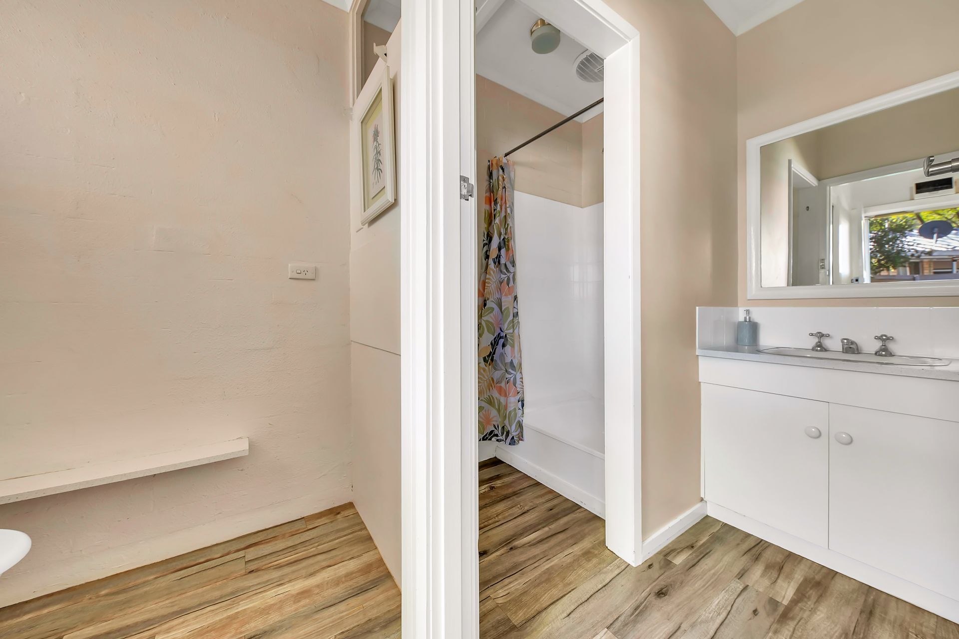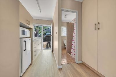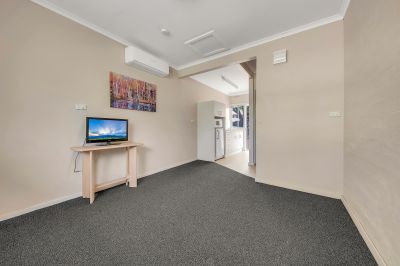 The main two-bedroom unit is light-filled and welcoming, with a northerly aspect that floods the kitchen and bedroom with sunshine. The layout includes an open plan living and dining area, a central bathroom with a separate toilet, and split system heating and cooling for year-round comfort. The adjoining studio unit includes a kitchenette, bathroom, and its own heating and cooling-making it a versatile space for a tenant, home office, or weekend visitors.