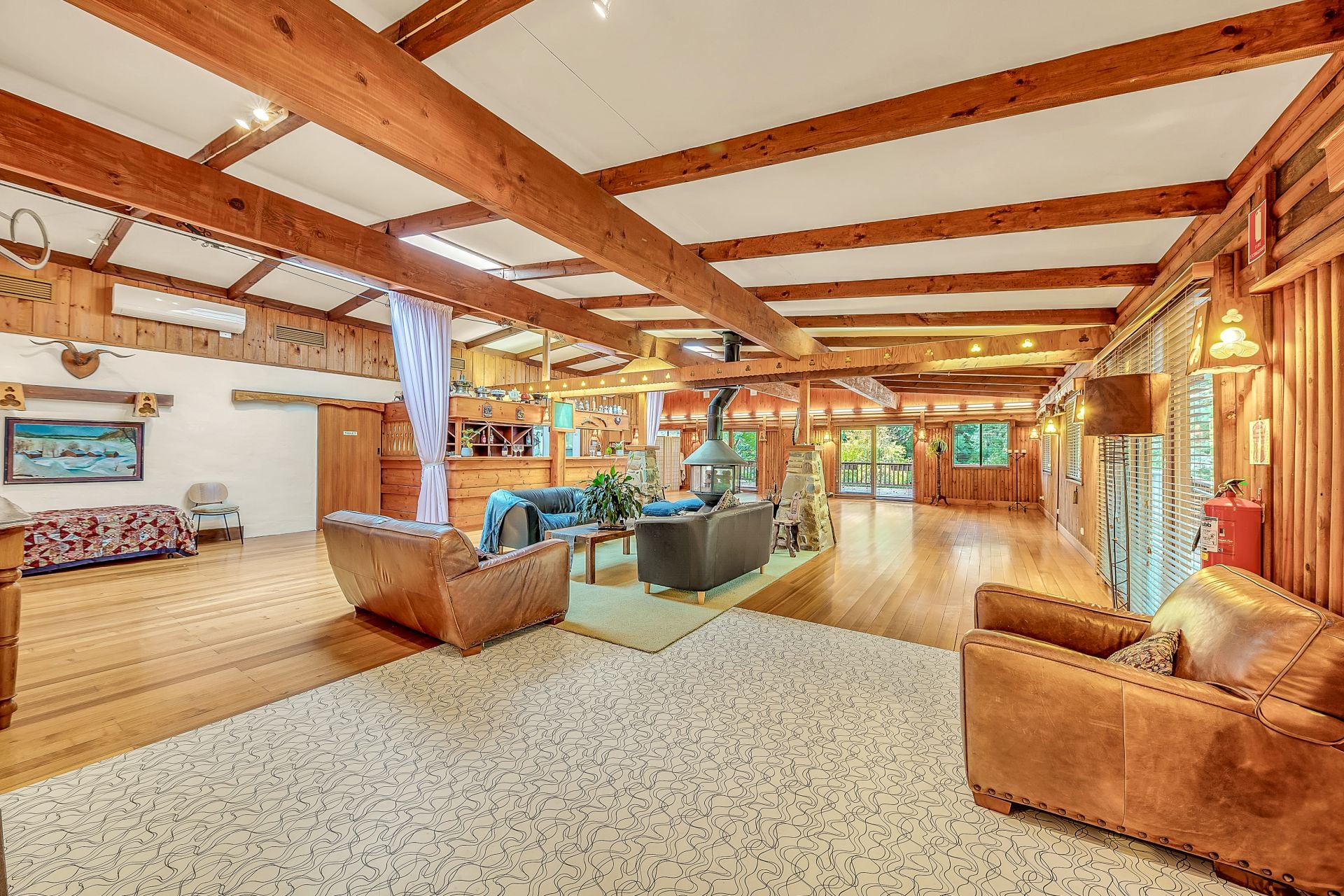 The commercial component of the property offers outstanding potential, with a character-filled function space ready to be reimagined. Featuring warm timber finishes, a central stone fireplace and seamless indoor/outdoor flow to an elevated deck with alpine views, the space comfortably accommodates 80+ guests. Complete with full bar facilities, a commercial-grade kitchen, storage areas and guest amenities, it is well equipped for events, dining or a range of creative ventures.