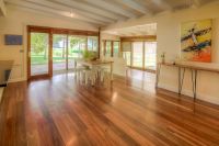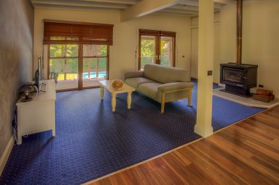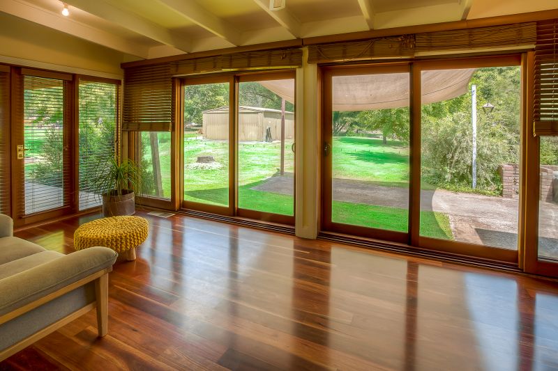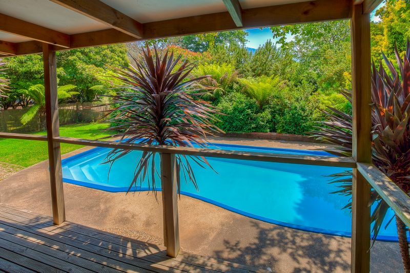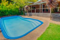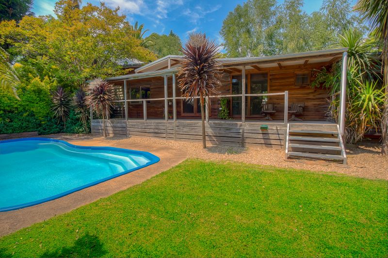 Expanding on the original cottage is an open plan living space incorporating a timeless kitchen with dishwasher, island bench, loads of storage, dining area, plus two living spaces. The glass doored sunroom provides a beautiful backdrop to the kitchen with views of the lush rear yard and spring fed pond that connects back to the Ovens River. The lounge opens onto the north side verandah, overlooking the in-ground pool, making a perfect BBQ and entertaining space.