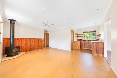 Step inside to discover an open-plan living area, complete with a cosy lounge featuring a wood fireplace, and a separate dining room that seamlessly flows onto the deck. The kitchen is equipped with gas hot water and cooking, and the home is complete with two spacious double bedrooms.