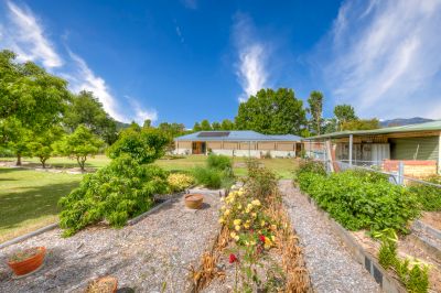 Set well back from the road and surrounded by established gardens, 57 Station Street offers a rare combination of space, privacy and semi-rural charm right in the heart of Porepunkah. Set on a beautifully open and level half-acre allotment, the property enjoys sweeping lawns, mature fruit trees, veggie beds and an impressive amount of shedding- perfect for those who value outdoor living, hobby gardening or simply room to move.