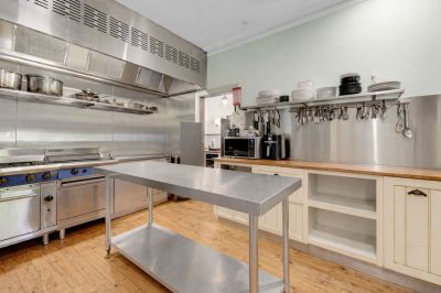 At the operational core is a near-new commercial kitchen (approx. 4.8m x 3.2m), fully equipped with premium Smeg appliances, excellent storage and preparation zones, and efficient access to service areas - ideal for high-level, professional kitchen operations.