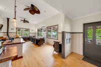 The building offers an impressive total floor area of approximately 300m², with a layout purpose-designed for hospitality flow and efficiency. The restaurant component features multiple dining zones, including a generous main dining room, gallery-style dining space and lounge area, providing flexibility for intimate service, larger sittings or private functions. These spaces connect seamlessly to the wrap-around verandah, significantly expanding seating capacity while capitalising on uninterrupted alpine views across Mount Feathertop and Mount Bogong.