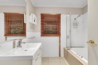 A cosy wood fire and split system heating and cooling ensure year-round comfort, while large windows and sliding doors capture the leafy outlook and flood the home with natural light.